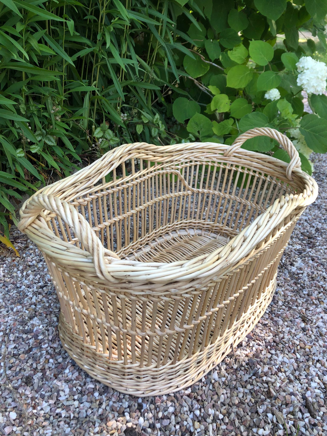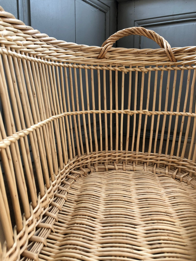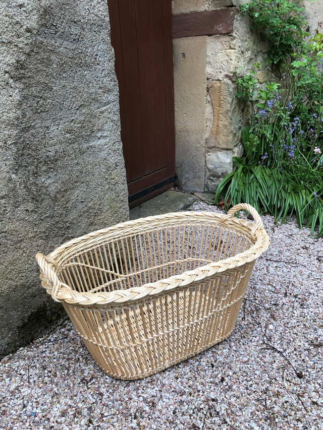 Grande panière en osier blanc - tressage ajouré (pour le linge, ou autre).